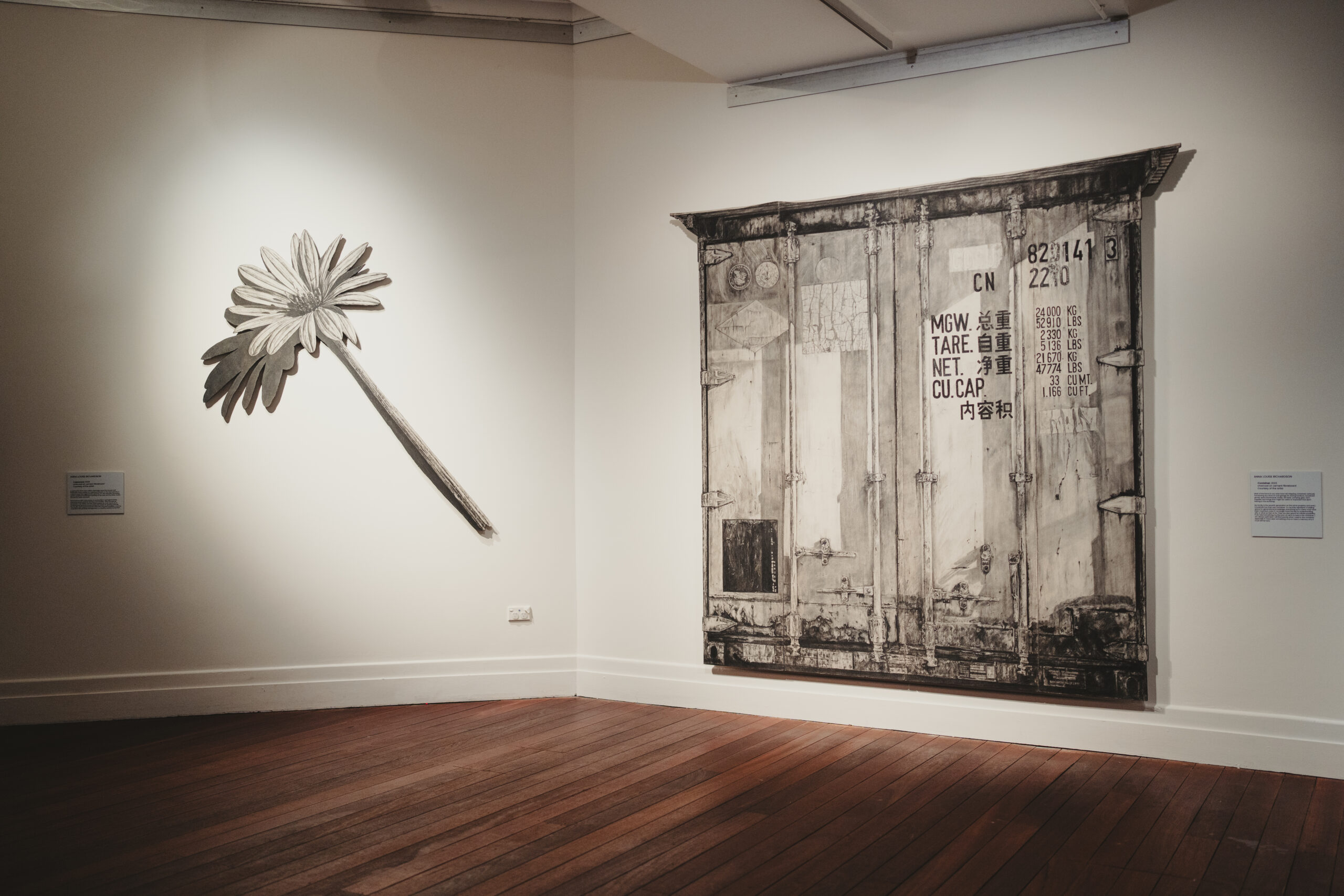 Anna Louise Richardson is an artist and freelance curator investigating rural Australian identity and associated mythologies. Richardson works primarily in charcoal and graphite on cement fibreboard, using a realistic approach, flattened perspective, cut-out shapes and manipulated scale to amplify the subject matter.